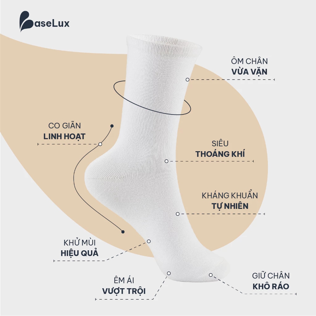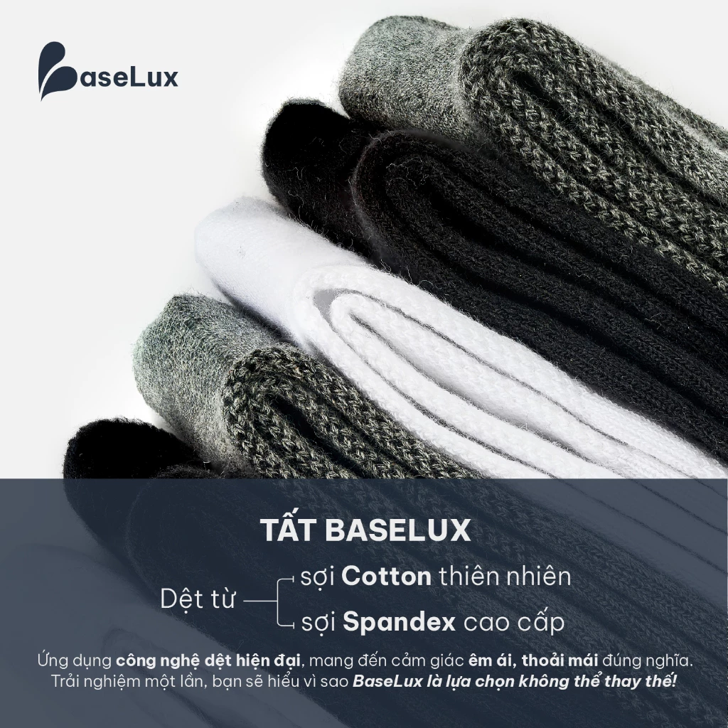 👉 Tất BaseLux – được dệt từ Sợi Cotton thiên nhiên & Sợi Spandex cao cấp