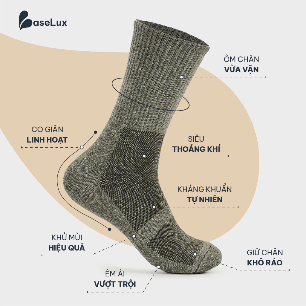 👉 Tất BaseLux – được dệt từ Sợi Cotton thiên nhiên & Sợi Spandex cao cấp