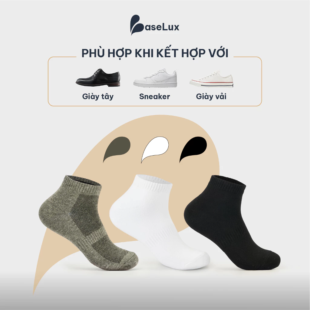 👉Tất của BaseLux với tone màu cơ bản, rất dễ để phối với giày thể thao, hoặc giày tây công sở, phù hợp cho cả nam và nữ
