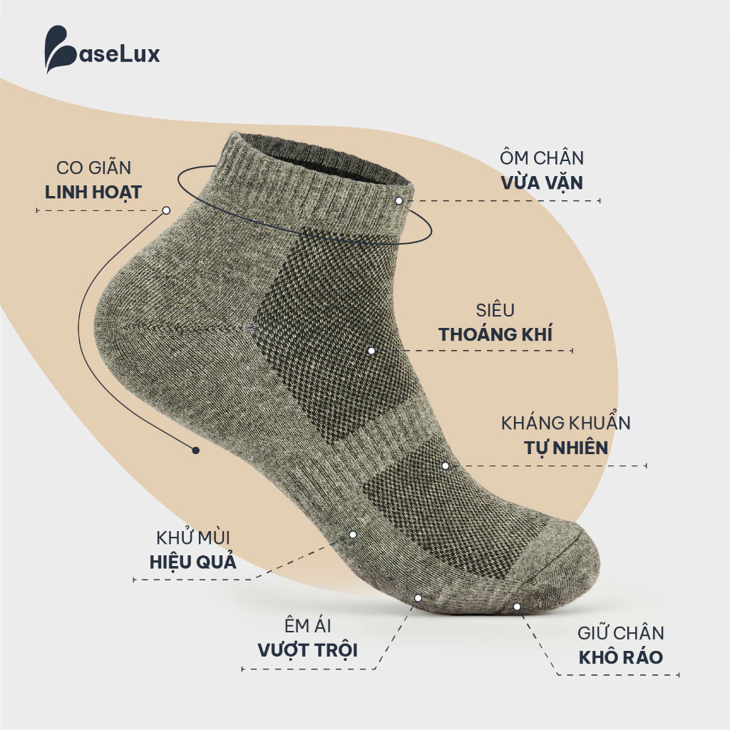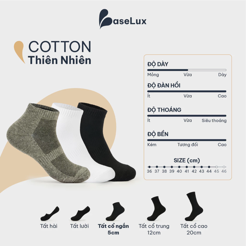 👉 Tất BaseLux – được dệt từ Sợi Cotton thiên nhiên & Sợi Spandex cao cấp