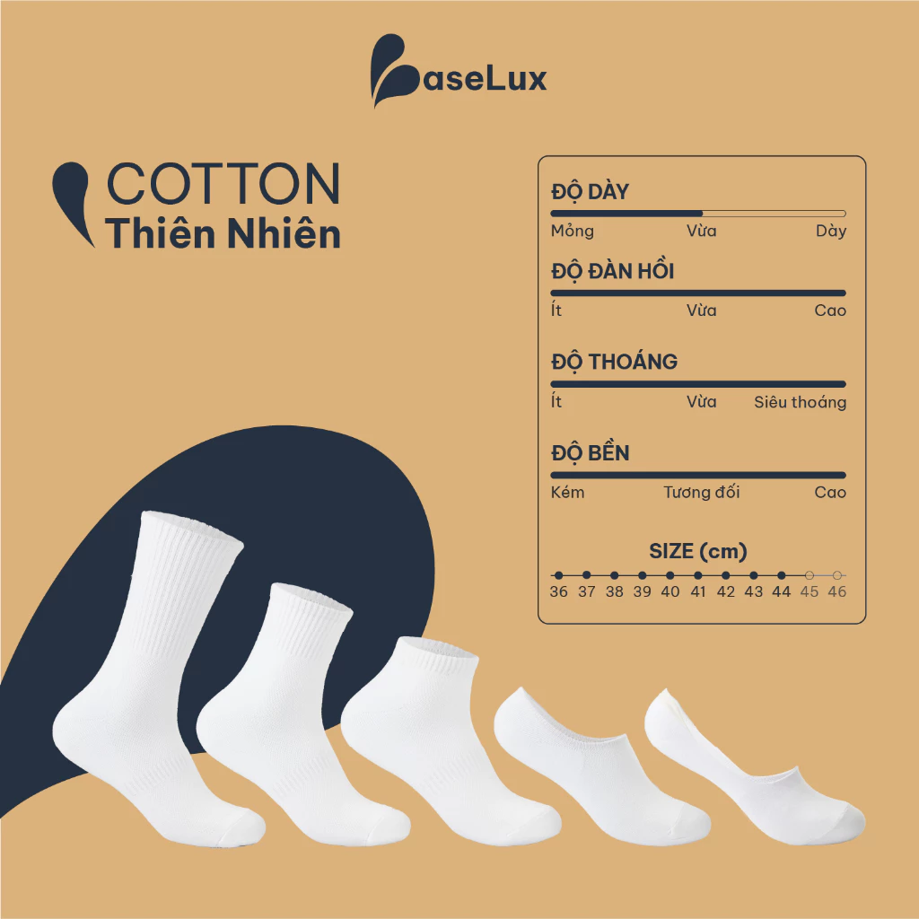 – Ưu điểm: Sơi bông (cotton) mang lại cảm giác mềm mại, êm mát đi rất thích chân, khử mùi, thấm hút mồ hôi tốt, bền form